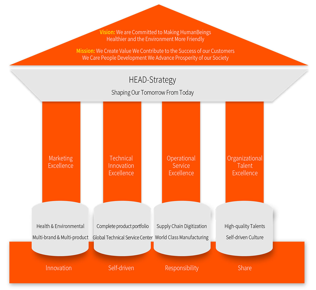 Head will adhere to the corporate vision of “We are committed to Making Human Beings Healthier and the Environment More Friendly", and will do our utmost to promote the Group's high-quality development.